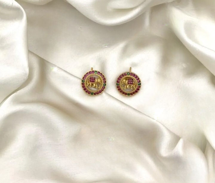Antique Finish Ruby Stone Studded Elephant Designer Necklace With Earrings