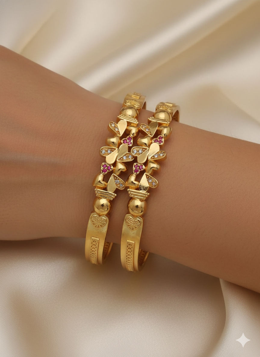 Micro Gold Plated AD Diamond Studded Heart Shape Bangles for Women – Set of 2